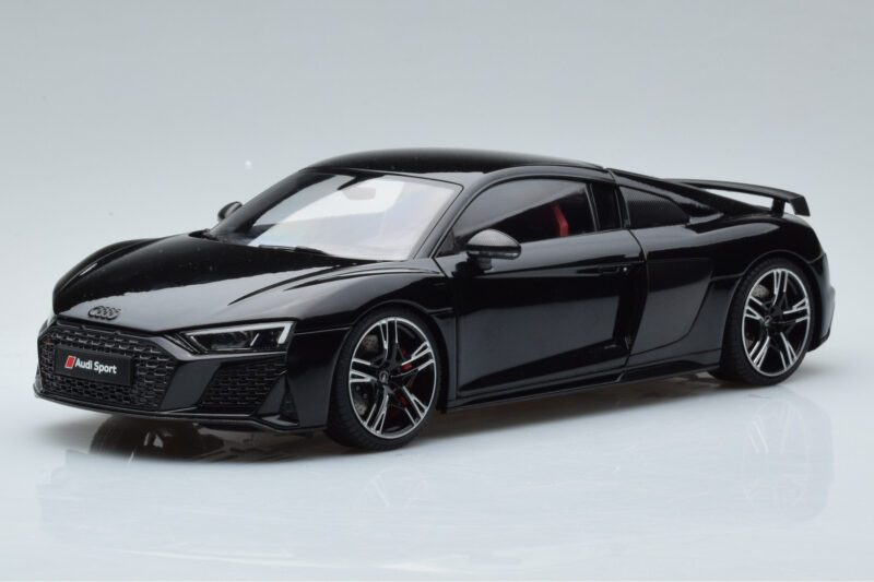 A 1:18 scale model measures approximately 25-28 cm (approximately 10-11 inches). The Audi R8 Performance Czarny Kengfai 1:18 is perfect for display in a glass cabinet or on a shelf.