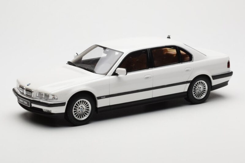 A 1:18 scale model measures approximately 25-28 cm (approximately 10-11 inches). The BMW 750iL E38 Asia Exclusive Biały Otto 1:18 is perfect for display in a glass cabinet or on a shelf.