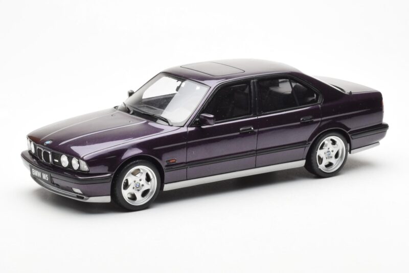 A 1:18 scale model measures approximately 25-28 cm (approximately 10-11 inches). The BMW M5 E34 Fioletowy Otto 1:18 is perfect for display in a glass cabinet or on a shelf.
