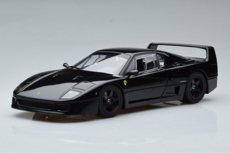 The Ferrari F40 Lightweight Czarny Kyosho 1:18 is crafted from Metal. Die-cast zinc alloy body with detailed plastic parts, rubber tires, and high-quality paint finish. Die-cast models are known for their weight, durability, and realistic feel.