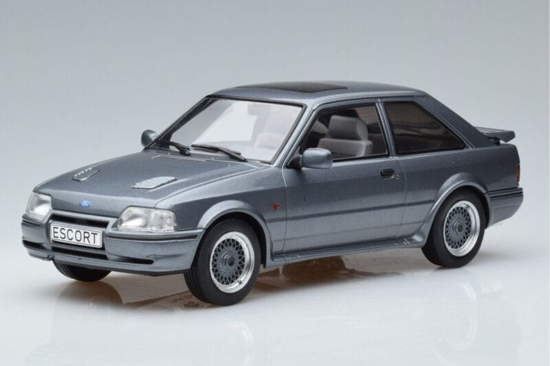 The Ford Escort Mk4 RS Turbo S Szary MCG 1:18 is crafted from Metal. Die-cast zinc alloy body with detailed plastic parts, rubber tires, and high-quality paint finish. Die-cast models are known for their weight, durability, and realistic feel.
