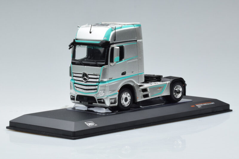 A 1:43 scale model measures approximately 10-12 cm (approximately 4-5 inches). The Mercedes Actros MP4 Racing Edition IXO 1:43 is perfect for display in a glass cabinet or on a shelf.