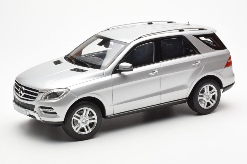 The Mercedes M-Class W166 Iridium Srebrny Metalic Minichamps 1:18 is crafted from Metal. Die-cast zinc alloy body with detailed plastic parts, rubber tires, and high-quality paint finish. Die-cast models are known for their weight, durability, and realistic feel.