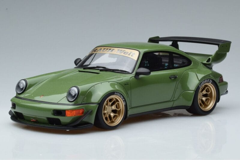 The Porsche 911 964 RWB Atlanta GT Spirit 1:18 is crafted from Żywica. High-quality resin with hand-painted details and limited production runs. Resin models offer exceptional detail and are prized by serious collectors for their craftsmanship.