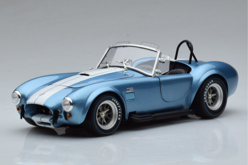 The Shelby Cobra 427 S/C Jasnoniebieski Kyosho 1:18 is crafted from Metal. Die-cast zinc alloy body with detailed plastic parts, rubber tires, and high-quality paint finish. Die-cast models are known for their weight, durability, and realistic feel.