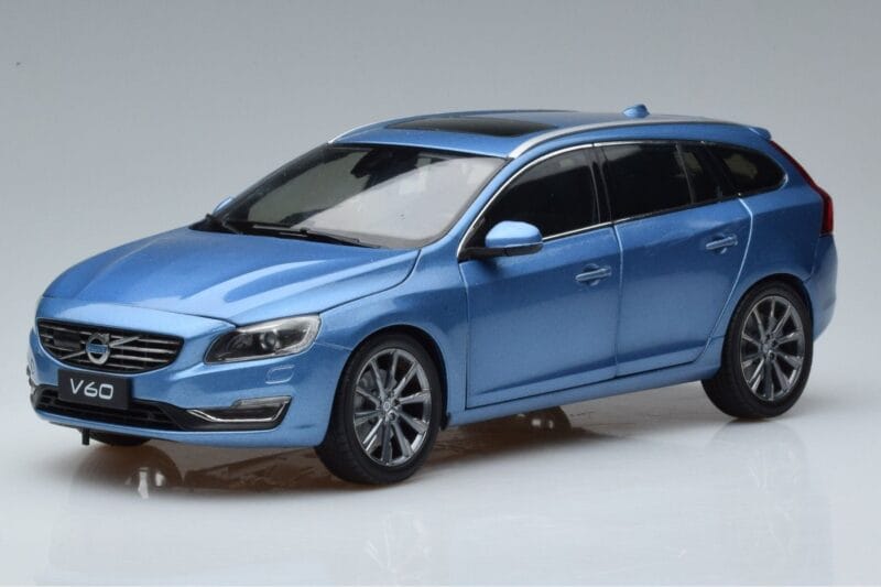 The Volvo V60 D3 Power Niebieski FAW 1:18 is crafted from Metal. Die-cast zinc alloy body with detailed plastic parts, rubber tires, and high-quality paint finish. Die-cast models are known for their weight, durability, and realistic feel.